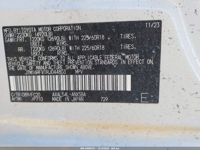 2024 TOYOTA RAV4 HYBRID - JTM16RFV1RJ044803, цвет - Белый, 2.5, Гибрид, Полный привод из США