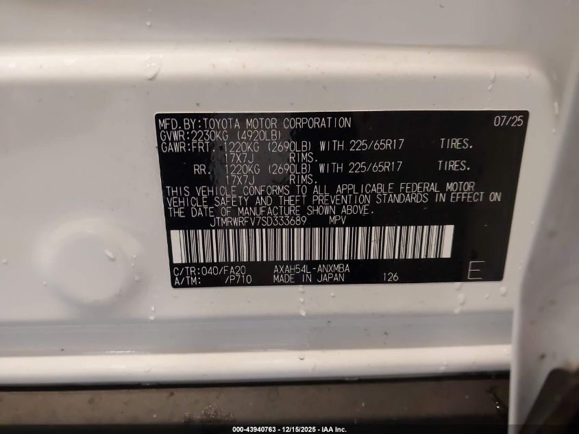 2025 TOYOTA RAV4 HYBRID - JTMRWRFV7SD333689, цвет - Белый, 2.5, Гибрид, Полный привод из США