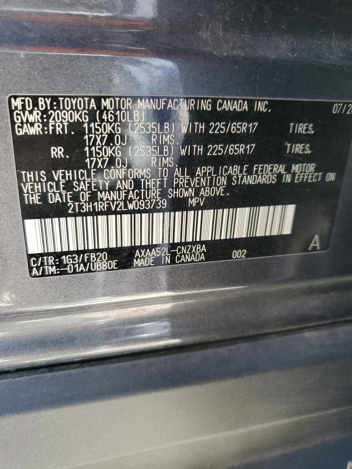2020 TOYOTA RAV4 - 2T3H1RFV2LW093739, цвет - Серый, 2.5, Бензин, из США