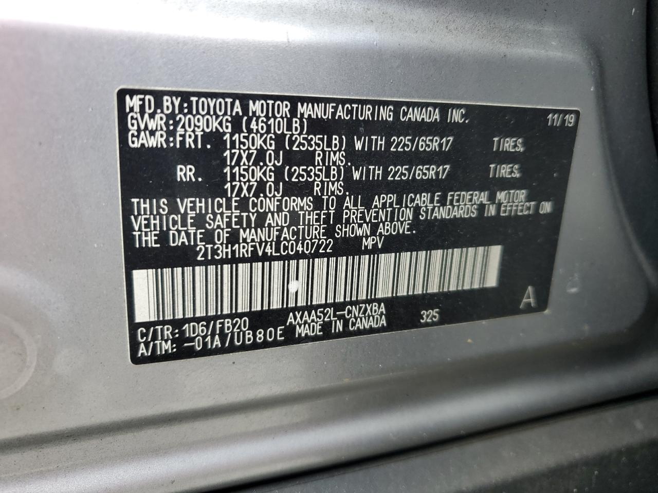 2020 TOYOTA RAV4 - 2T3H1RFV4LC040722, цвет - Серебряный, 2.5, Бензин, из США