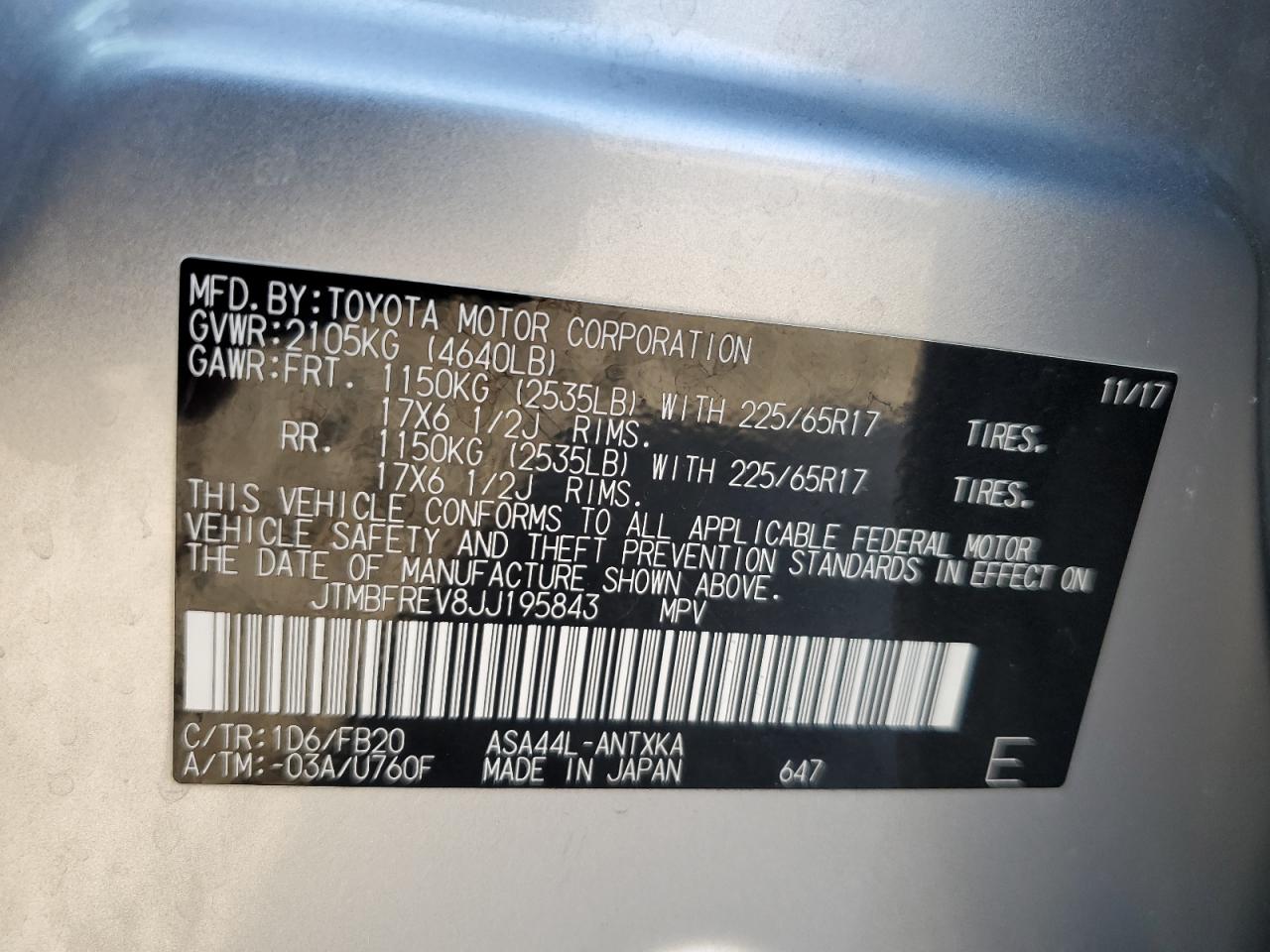 2018 TOYOTA RAV4 - JTMBFREV8JJ195843, цвет - Серебряный, 2.5, Бензин, Полный привод из США