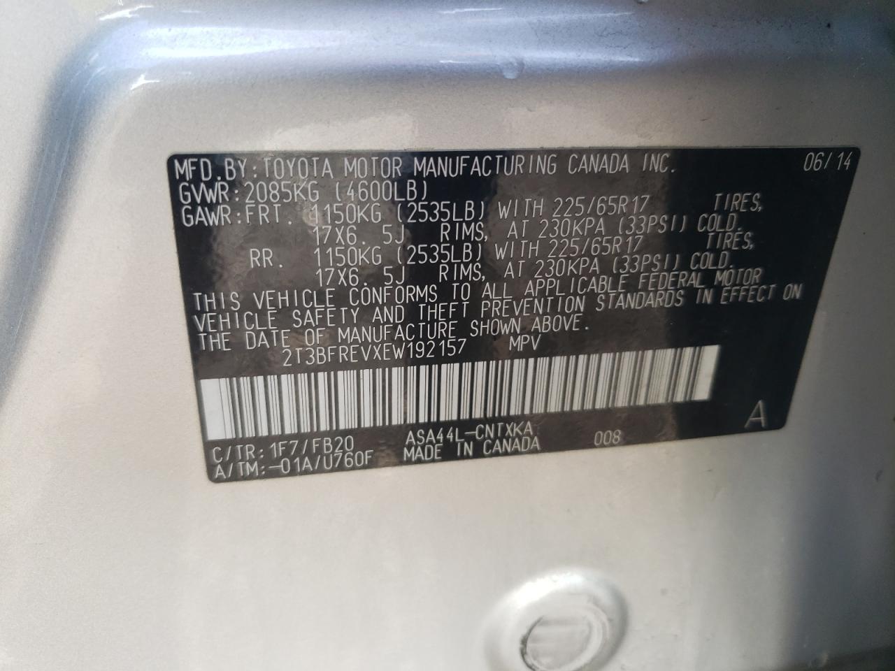 2014 TOYOTA RAV4 - 2T3BFREVXEW192157, цвет - Серебряный, 2.5, Бензин, Полный привод из США
