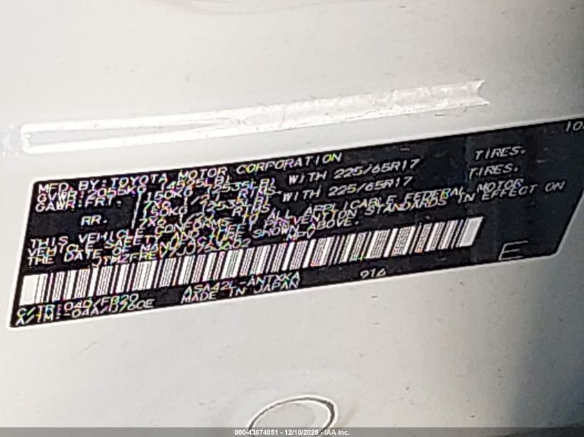 Цвет БелыйЦилиндры 4Привод Передний приводVIN JTMZFREV7JJ753602Состояние СтационарноПовреждения Неизвестно
