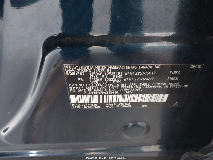 2017 TOYOTA RAV4 - 2T3ZFREV7HW315416, цвет - Черный, 2.5, Бензин, Передний привод из США