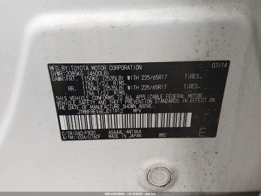 Цвет БелыйЦилиндры 4Привод Полный приводVIN JTMBFREV6EJ011912Состояние Заводится и едет (проверено)Повреждения Передняя или задняя