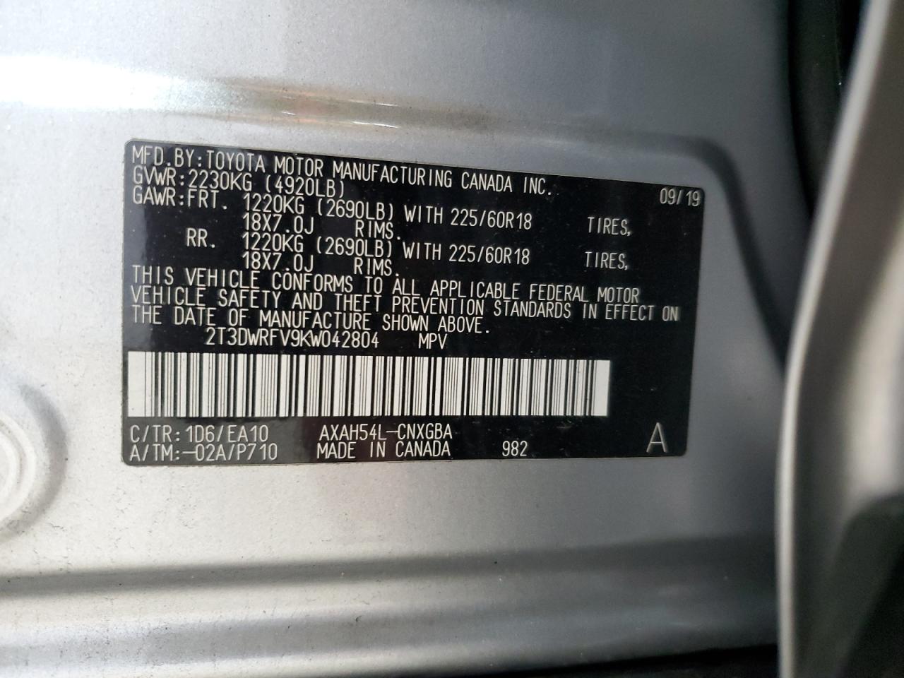 2019 TOYOTA RAV4 - 2T3DWRFV9KW042804, цвет - Серебряный, 2.5, Гибрид, Полный привод из США