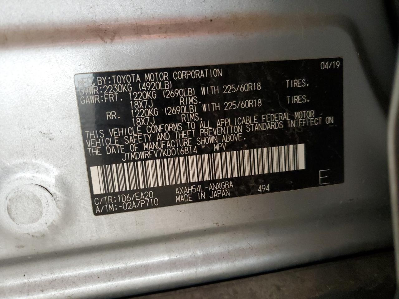 2019 TOYOTA RAV4 - JTMDWRFV7KD016814, цвет - Серебряный, 2.5, Гибрид, Полный привод из США