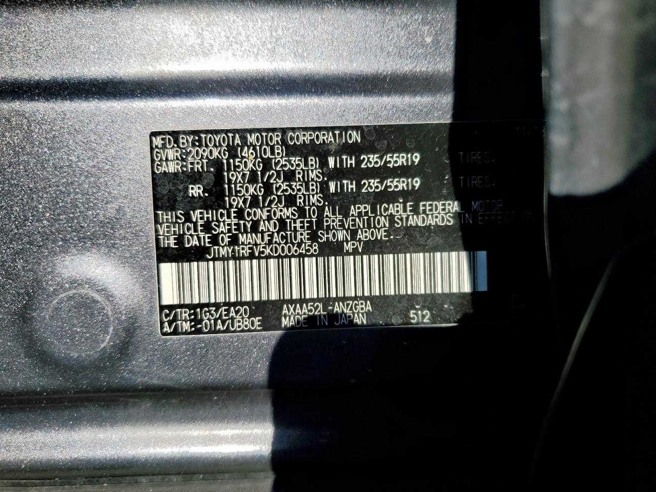 Цвет Древесный угольЦилиндры 4VIN JTMY1RFV5KD006458Состояние Заводится и едет (проверено)