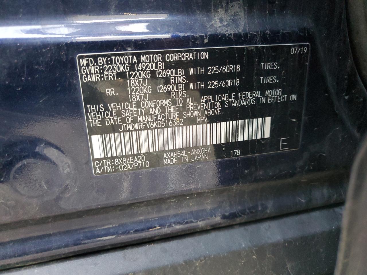 Цвет СинийЦилиндры 4Привод Полный приводVIN JTMDWRFV6KD516382Состояние НеизвестноПовреждения Передняя или задняя