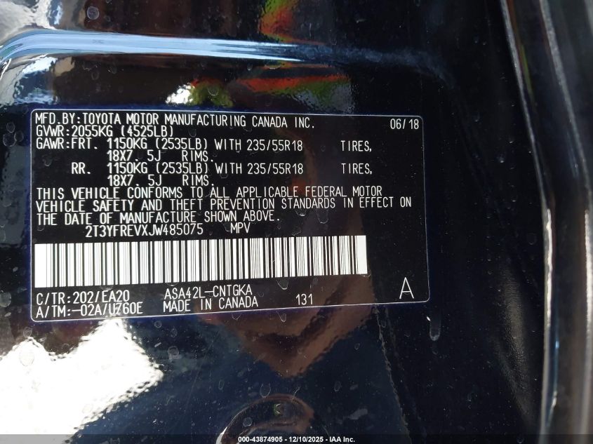 2018 TOYOTA RAV4 - 2T3YFREVXJW485075, цвет - Черный, 2.5, Бензин, Передний привод из США