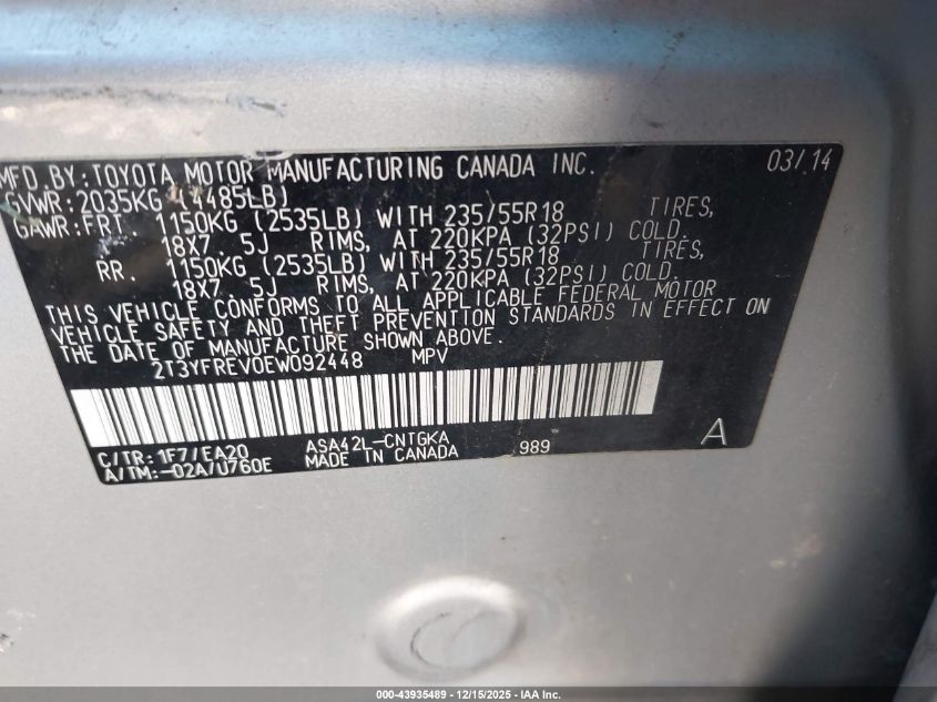 2014 TOYOTA RAV4 - 2T3YFREV0EW092448, цвет - Серебряный, 2.5, Бензин, Передний привод из США