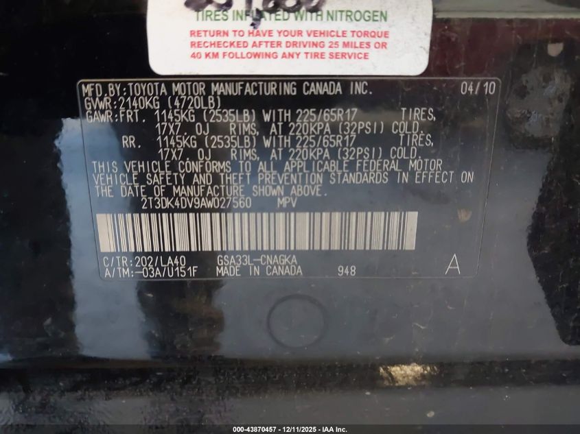 2010 TOYOTA RAV4 LIMITED