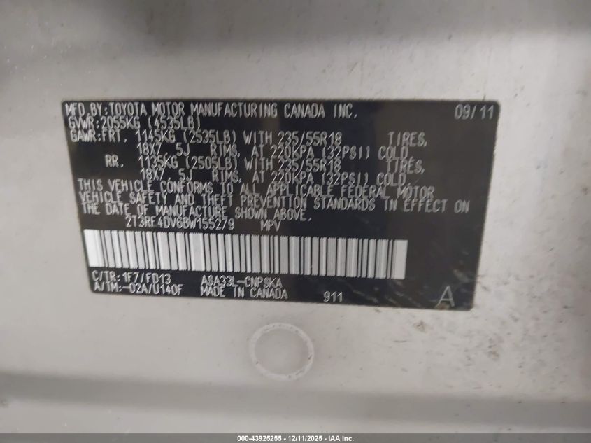 2011 TOYOTA RAV4 - 2T3RF4DV6BW155279, цвет - Серебряный, 2.5, Бензин, Полный привод из США