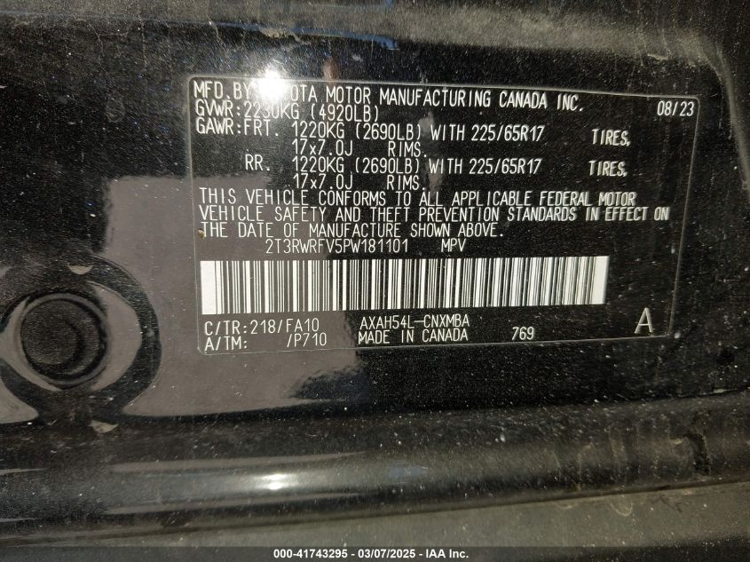 2023 TOYOTA RAV4 HYBRID - 2T3RWRFV5PW181101, цвет - Черный, 2.5, Гибрид, Полный привод из США