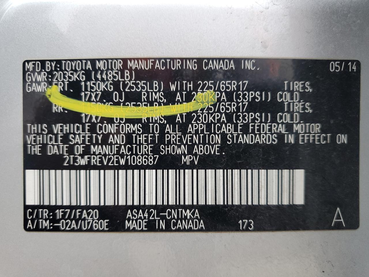 2014 TOYOTA RAV4 - 2T3WFREV2EW108687, цвет - Серебряный, 2.5, Бензин, из США