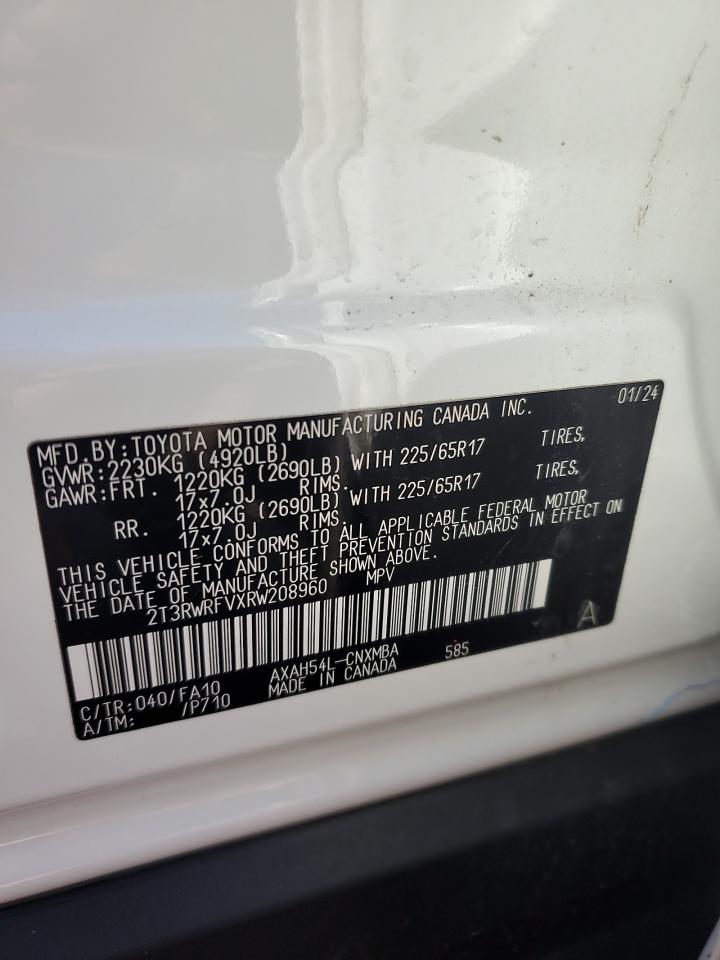 Цвет БелыйЦилиндры 4Привод Полный приводVIN 2T3RWRFVXRW208960Состояние Заводится и едет (проверено)Повреждения НезначительныеДата аукциона 2025-10-28