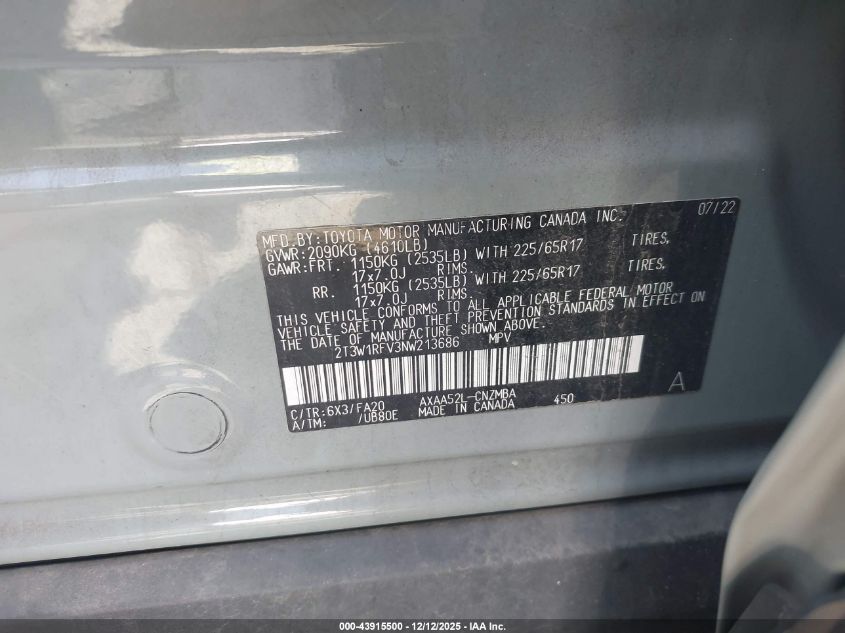 2022 TOYOTA RAV4 - 2T3W1RFV3NW213686, цвет - Серый, 2.5, Бензин, Передний привод из США