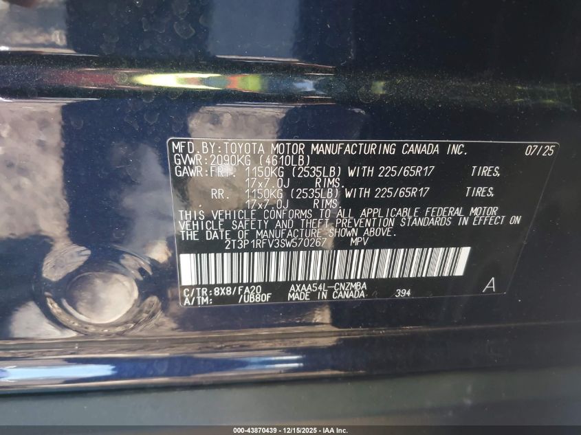 2025 TOYOTA RAV4 - 2T3P1RFV3SW570267, цвет - Синий, 2.5, Бензин, Полный привод из США