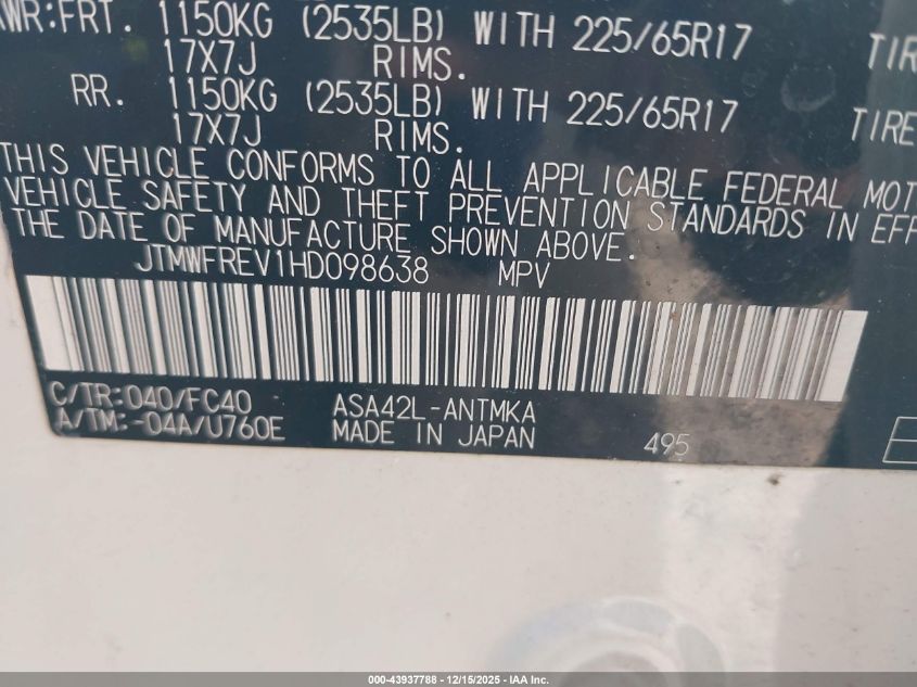 2017 TOYOTA RAV4 - JTMWFREV1HD098638, цвет - , 2.5, Бензин, Передний привод из США