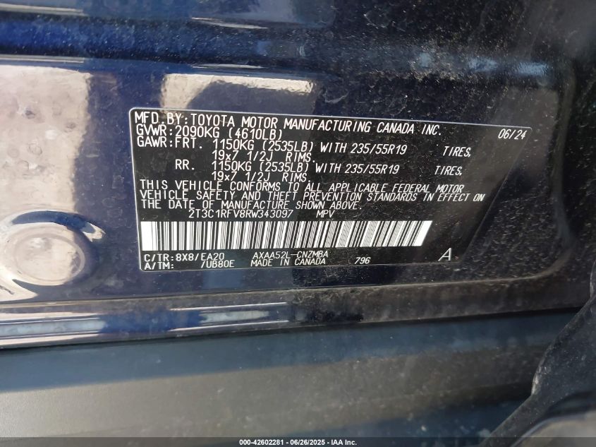 2024 TOYOTA RAV4 - 2T3C1RFV8RW343097, цвет - Синий, 2.5, Бензин, Передний привод из США