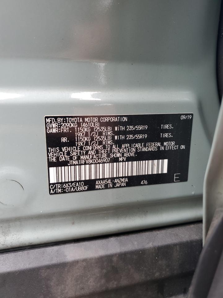 2019 TOYOTA RAV4 - JTMA1RFV8KD046907, цвет - Серый, 2.5, Бензин, Полный привод из США