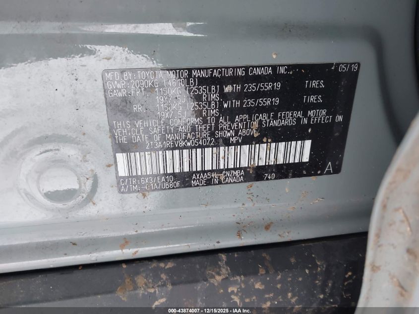 2019 TOYOTA RAV4 - 2T3A1RFV8KW054072, цвет - , 2.5, Бензин, Полный привод из США