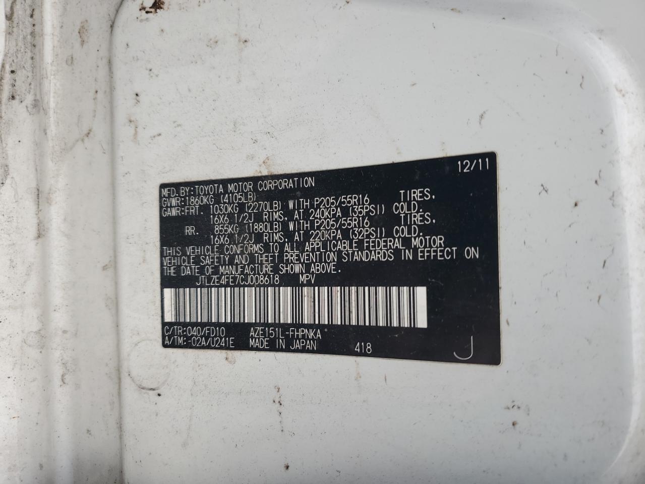 2012 TOYOTA SCION XB - JTLZE4FE7CJ008618, цвет - Белый, 2.4, Бензин, из США
