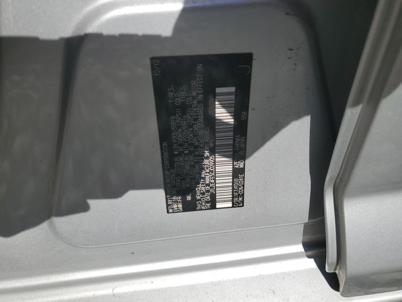 Цвет СеребряныйЦилиндры 4VIN JTLZE4FE5CJ029905Состояние НеизвестноПовреждения Передняя или задняя
