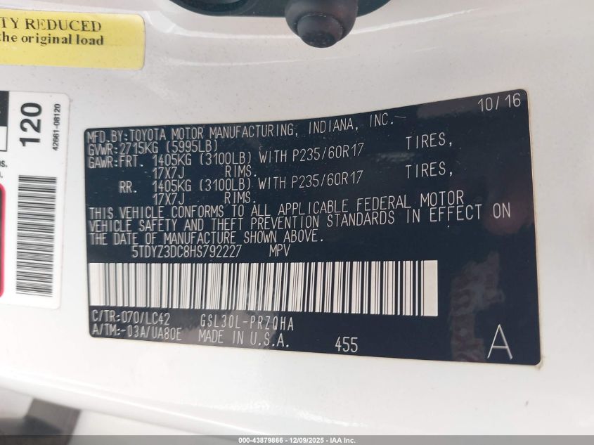 2017 TOYOTA SIENNA - 5TDYZ3DC8HS792227, цвет - Белый, 3.5, Бензин, Передний привод из США