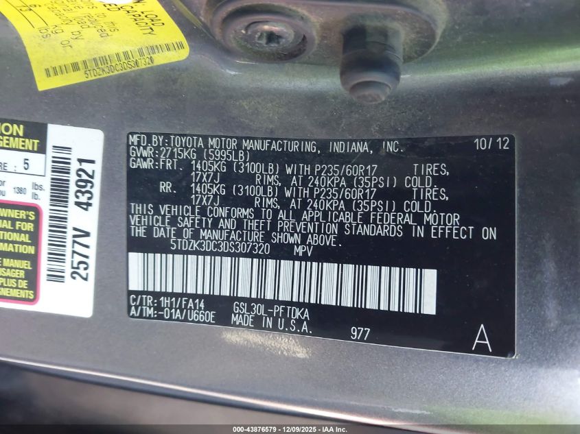 Цвет СерыйЦилиндры 6Привод Передний приводVIN 5TDZK3DC3DS307320Состояние Заводится и едет (проверено)Повреждения Передняя или задняя