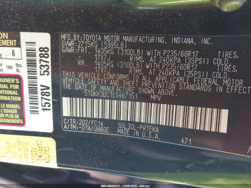 Цвет ЧерныйЦилиндры 6Привод Передний приводVIN 5TDKK3DC1ES467151Состояние Заводится и едет (проверено)Повреждения Обычный износДата аукциона 2025-12-18