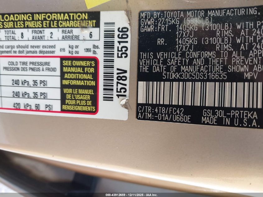 Цвет ЗагарЦилиндры 6Привод Передний приводVIN 5TDKK3DC5DS316635Состояние Заводится и едет (проверено)Повреждения Обычный износДата аукциона 2025-12-16