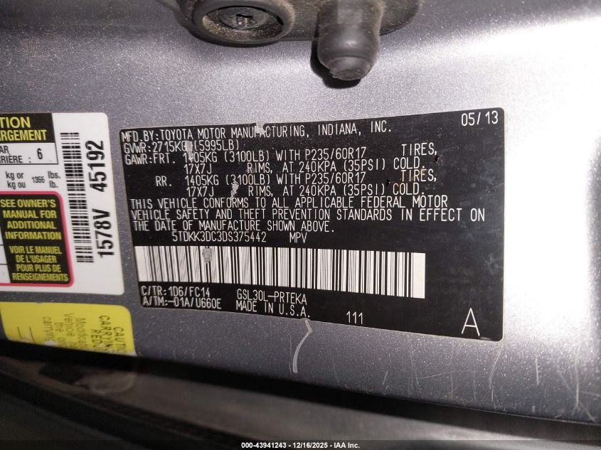 2013 TOYOTA SIENNA SPORT