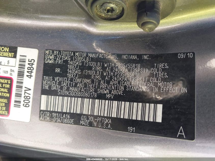 Цвет СерыйЦилиндры 6Привод Передний приводVIN 5TDYK3DC6BS080178Состояние СтационарноПовреждения Вандализм