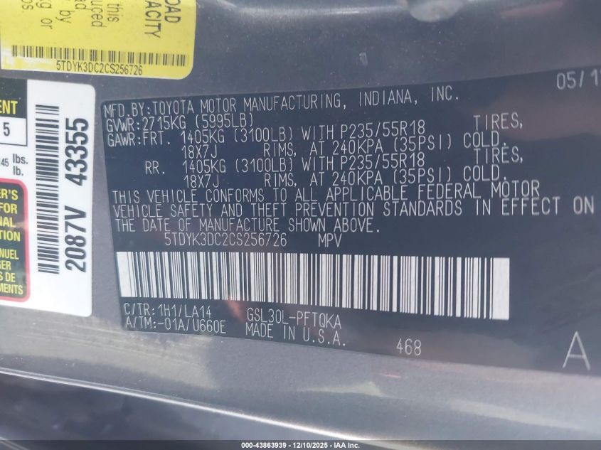 Цвет СерыйЦилиндры 6Привод Передний приводVIN 5TDYK3DC2CS256726Состояние Заводится и едет (проверено)Повреждения Передняя или задняя