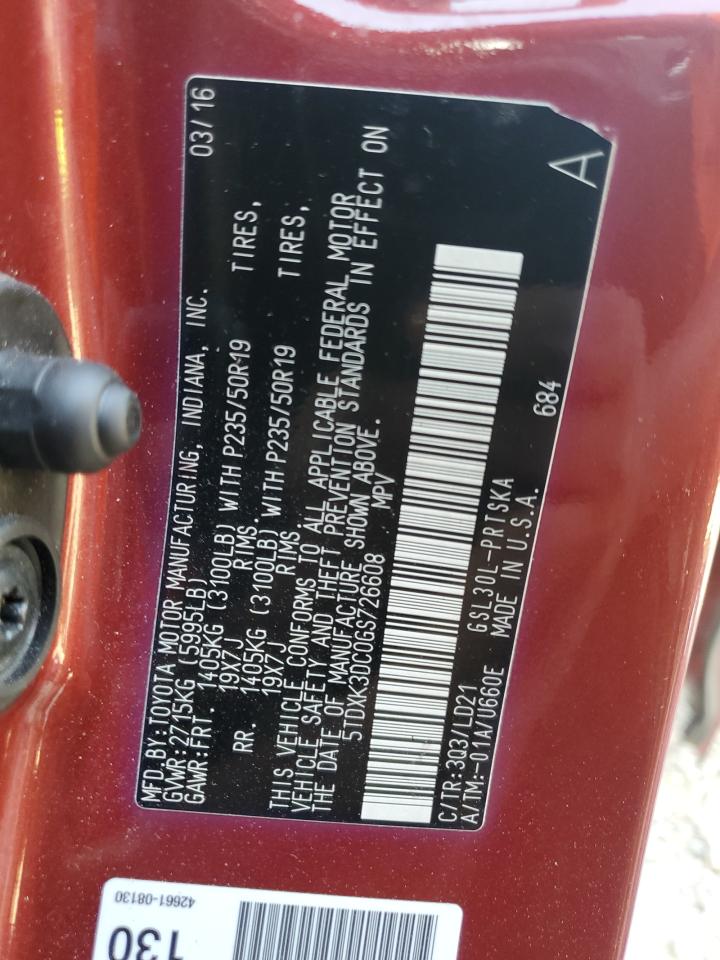 2016 TOYOTA SIENNA - 5TDXK3DC0GS726608, цвет - Бургундия, 3.5, Бензин, из США