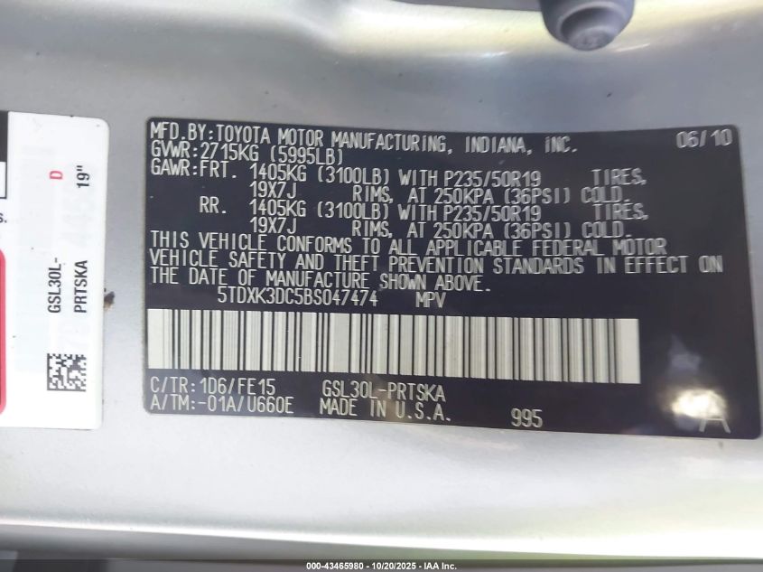 2011 TOYOTA SIENNA - 5TDXK3DC5BS047474, цвет - Серебряный, 3.5, Бензин, Передний привод из США