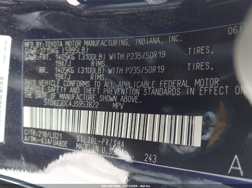 Цвет СерыйЦилиндры 6Привод Передний приводVIN 5TDXZ3DC4JS953822Состояние Заводится и едет (проверено)Повреждения Задняя