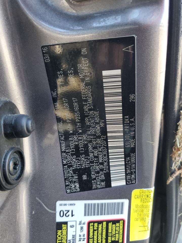 2016 TOYOTA SIENNA - 5TDYK3DC3GS720712, цвет - Серый, 3.5, Бензин, из США