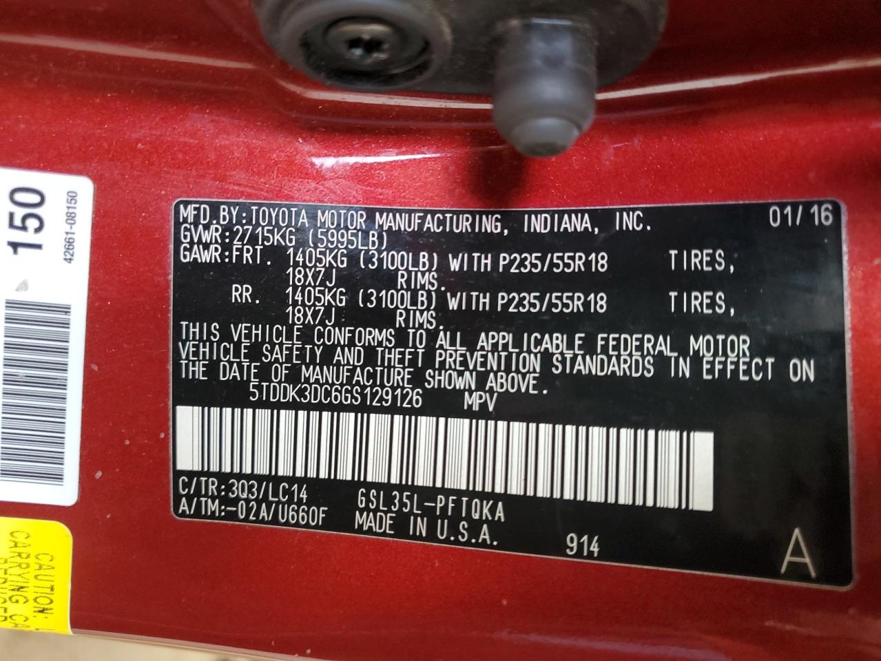 2016 TOYOTA SIENNA - 5TDDK3DC6GS129126, цвет - Красный, 3.5, Бензин, Полный привод из США