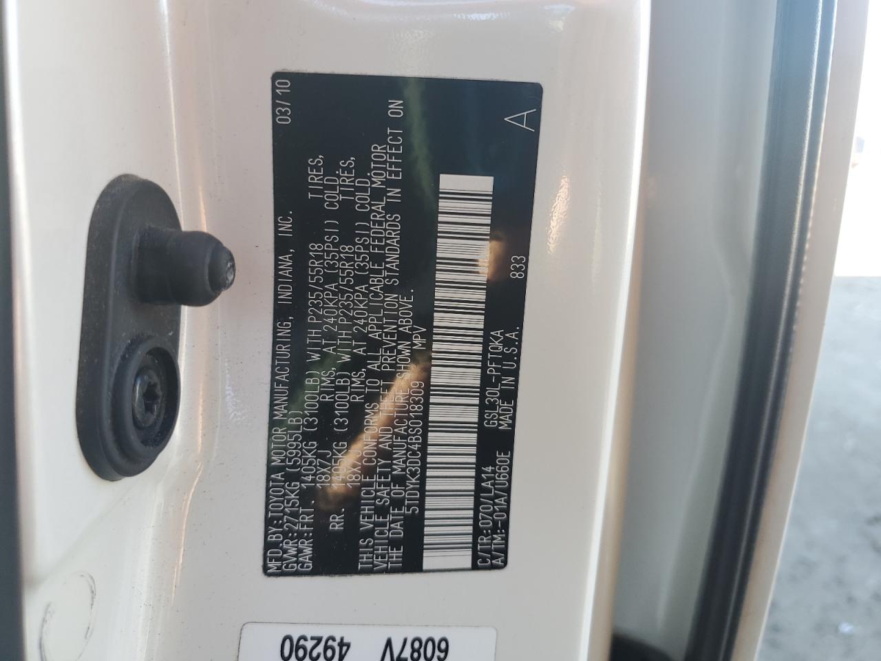 Цвет БелыйЦилиндры 6VIN 5TDYK3DC4BS018309Состояние НеизвестноПовреждения Передняя или задняяДата аукциона 2025-10-08