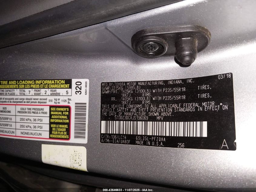 2018 TOYOTA SIENNA - 5TDDZ3DCXJS196069, цвет - Серебряный, 3.5, Бензин, Полный привод из США