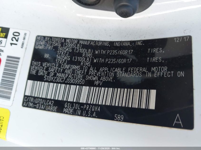 2018 TOYOTA SIENNA - 5TDYZ3DC7JS909950, цвет - Белый, 3.5, Бензин, Передний привод из США