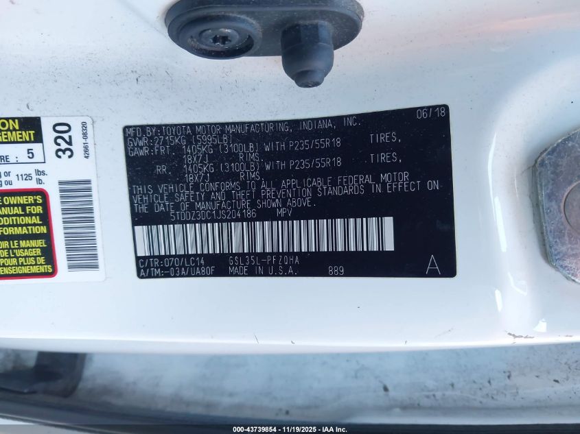 2018 TOYOTA SIENNA - 5TDDZ3DC1JS204186, цвет - Белый, 3.5, Бензин, Полный привод из США