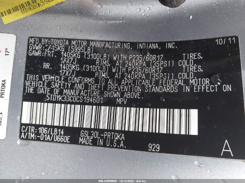 2012 TOYOTA SIENNA