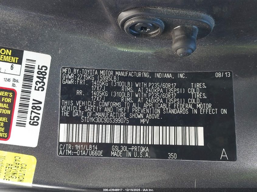 Цвет КоричневийЦилиндры 6Привод Передний приводVIN 5TDYK3DC9DS399075Состояние Заводится и едет (проверено)Повреждения Передняя левая