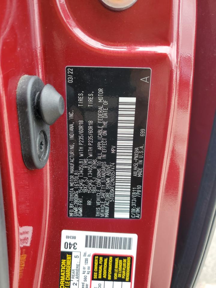 2022 TOYOTA SIENNA - 5TDDSKFC2NS057474, цвет - Красный, 2.5, Гибрид, Полный привод из США
