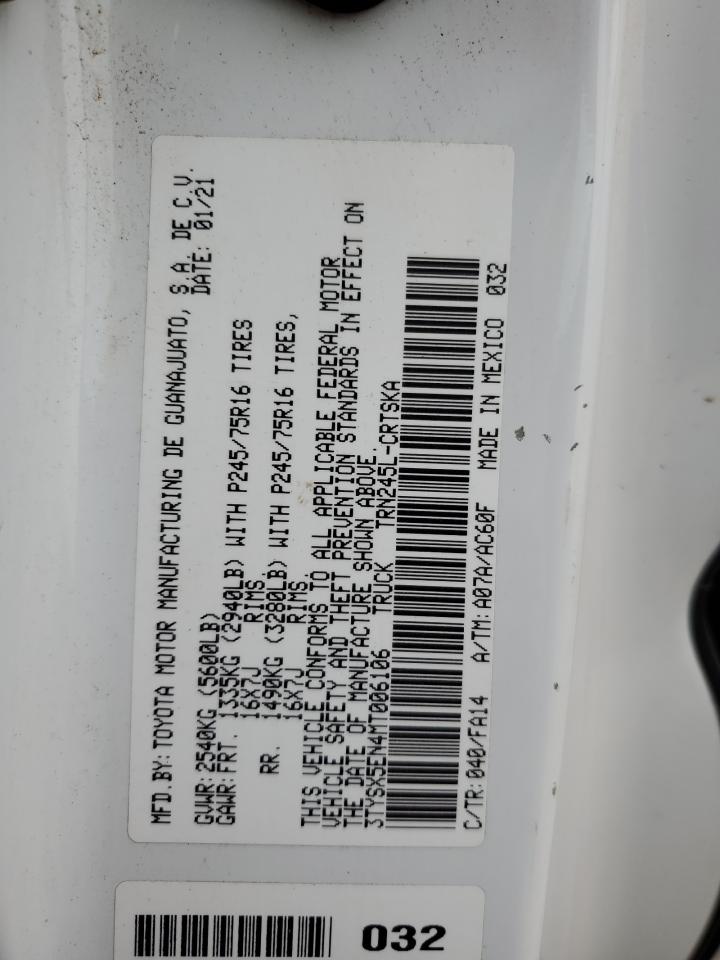 2021 TOYOTA TACOMA - 3TYSX5EN4MT006106, цвет - Белый, 2.7, Бензин, 4x4 с задним приводом из США