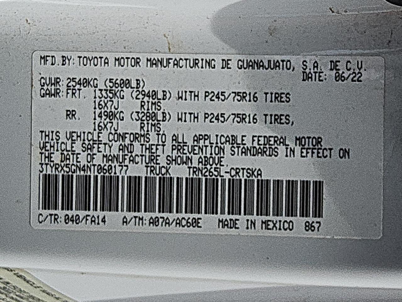 Цвет БелыйЦилиндры 4Привод Задний приводVIN 3TYRX5GN4NT060177Состояние Заводится и едет (проверено)Повреждения НезначительныеДата аукциона 2025-10-09