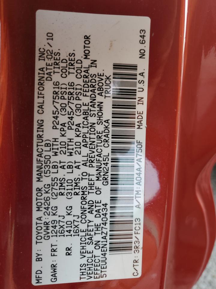 2010 TOYOTA TACOMA - 5TEUU4EN1AZ740434, цвет - Красный, 4.0, Бензин, 4x4 с задним приводом из США